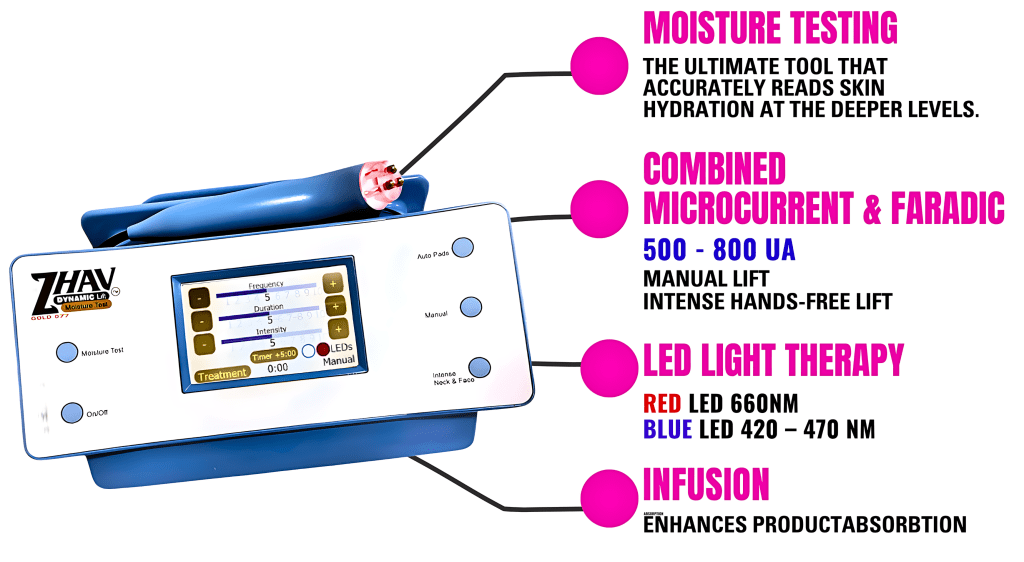 She collaborated with an award-winning team of local engineers to develop the groundbreaking NEW and ONLY one in the World non-surgical face lift innovation that, for clinics, delivers stronger results and increased revenue potential, the ZHAV Dynamic Lift™ + Moisture Testing.